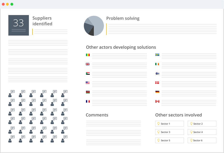 In one month, we multiplied information sources by reaching out to thousands of experts worldwide who in turn, proposed 30 new solutions to the problem. We then consolidated the results in various intelligent formats: video report, online report that can be segmented and filtered, executive report…