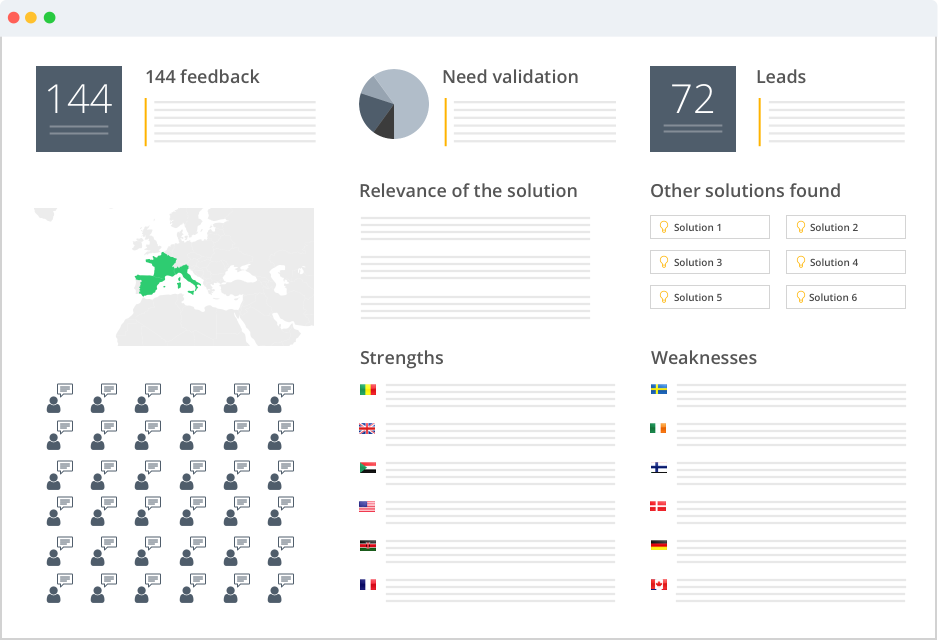 Regardless of the level of maturity (idea, concept, development…) or the nature of your innovation (product, technology, service, process…), you want to validate the fact that your innovation meets market expectations in order to ensure its adoption.